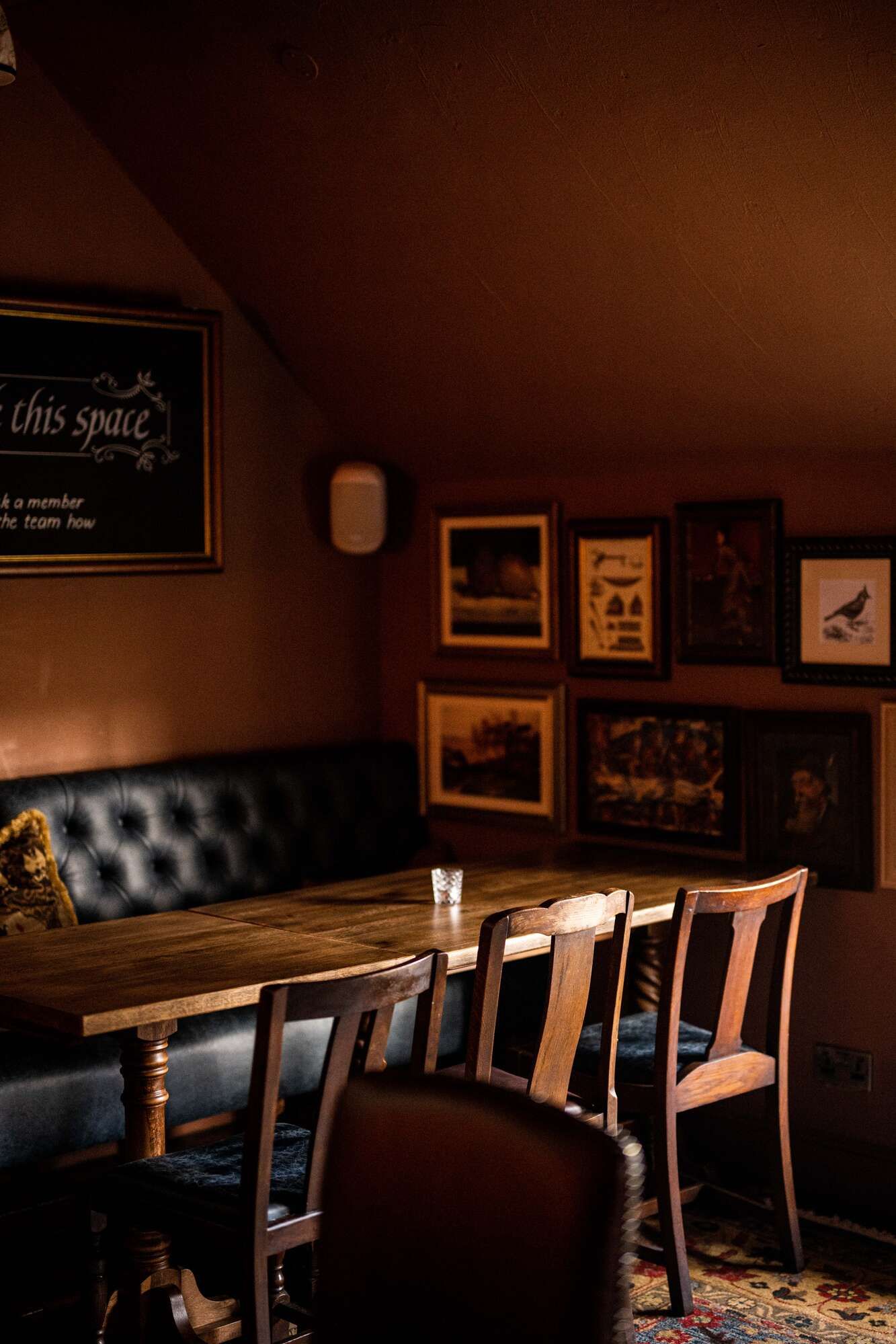 Located on the first floor, this private area overlooks the restaurant, giving you a bird’s eye view of our beautiful pub. Available to book independently or in conjunction with The Restaurant for larger groups.